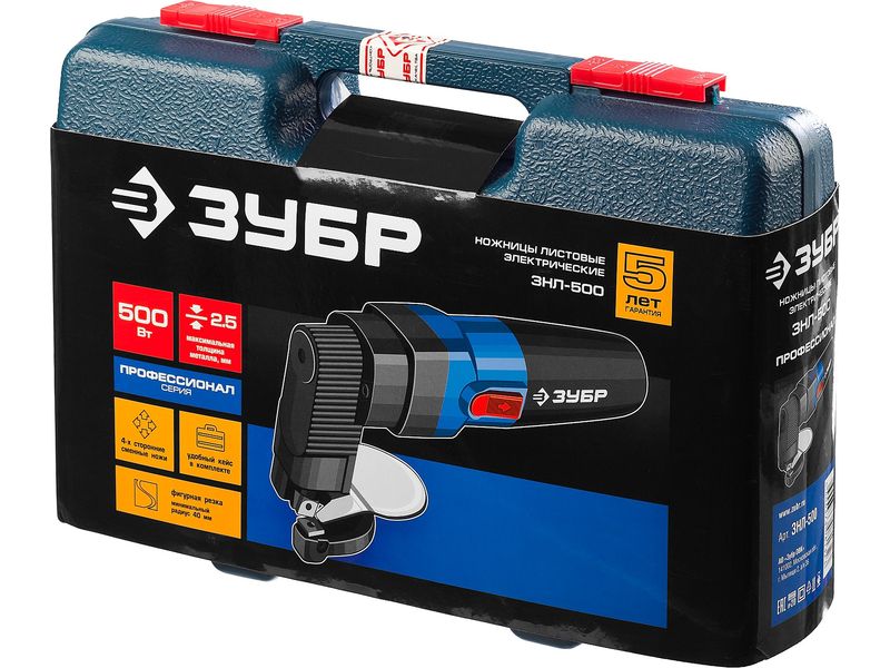 Ножницы листовые электрические ЗУБР, радиус поворота 40мм, до 2.5мм,1200об/мин, 500Вт