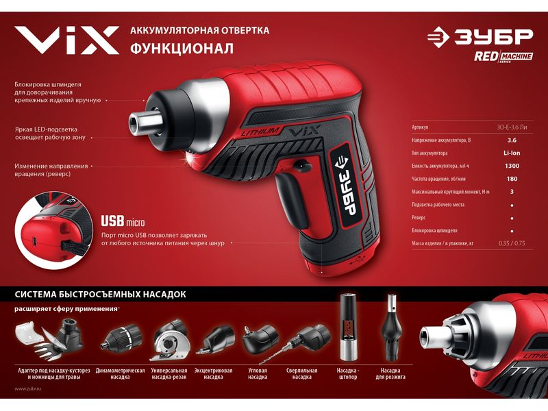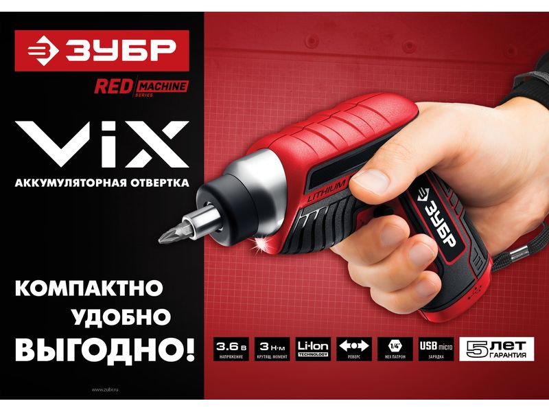 Купить ЗУБР ViX отвертка аккумуляторная 3.6 В, в коробке с 10 битами