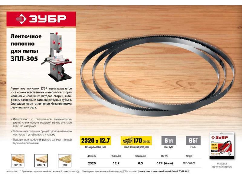 Полотно ленточное для пилы ЗПЛ-305, 2320 х 12,7 х 0,5мм 6 TPI