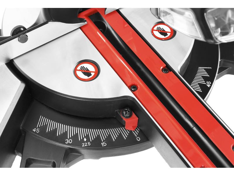 - Фиксирующийся в любом положении поворотный стол и удобная регулировка наклона облегчают установку угла пиления,