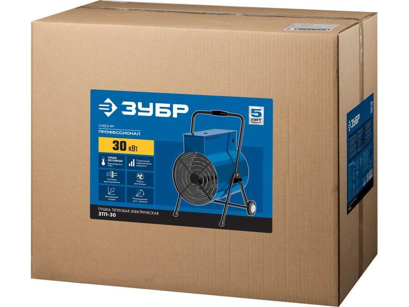 Профессиональные электрические тепловые пушки с питанием от трехфазной электрической сети эффективны для быстрого и направленного обогрева складских и производственных помещений, ангаров и мастерских, благодаря большой площади нагревательных элементов и мощным двигателем вентилятора. Конструктивные особенности обеспечивают защиту как пользователя, так и тепловой пушки в случае возникновения нештатных ситуаций.